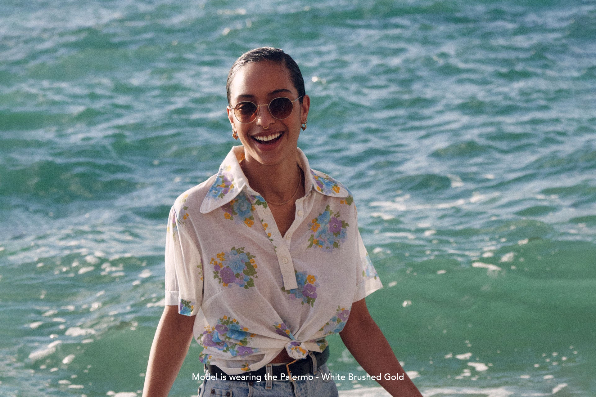 This unisex rounded shape with a quirky angular side looks good on everyone. It has a clean finishing with stepdown nose bridge. Handmade in Italy from recycled stainless steel. Our ZEISS sun lenses offer 100% protection agains harmful UVA+B radiation from the sun. Look good for your planet!